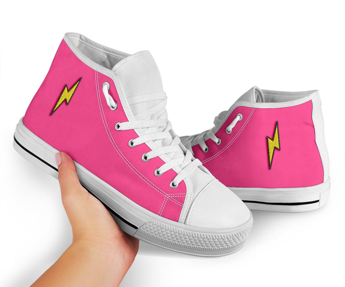 Embroidered Pink On White Lightning Bolt Trendy High Tops