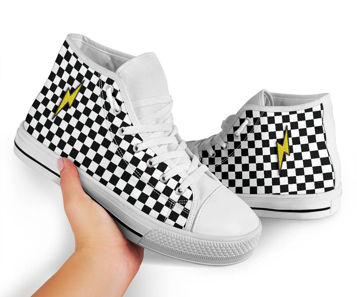 Embroidered White Checkered Lightning Bolt Trendy High Tops