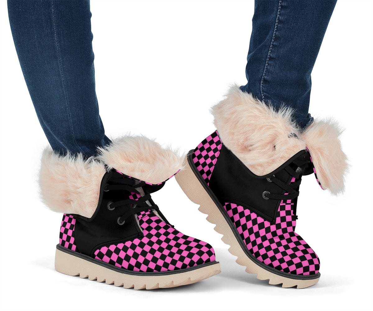 Pink Checkered Suede Snow Boots
