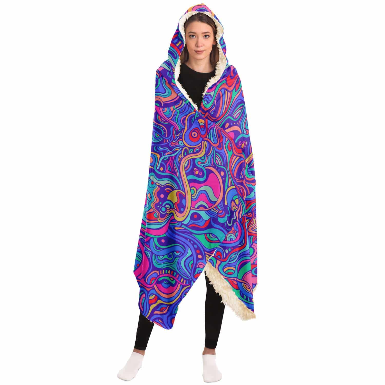 A Kaleidoscope of Color and ComfortImmerse yourself in a world of dazzling hues and cozy warmth with our Psychedelic Aurora Premium Hooded Blanket! Featuring a mesmerizing design inspired by the ethereal beauty of the aurora borealis, this hooded blanket offers warmth, comfort, and a touch of psychedelic charm that's perfect for adding a splash of color to any space. Personalize Your Dreamy WonderlandCustomize your blanket by selecting the perfect lining to match your comfort needs. Choose the plush microfiber fleece lining for a cozy embrace on cool evenings, or indulge in the luxurious 100% polyester sherpa lining for an extra touch of softness. Whichever you choose, you'll be enveloped in the dreamy warmth of a vibrant aurora. A Silky Smooth Journey to a World of ColorOur hooded blanket features a silky smooth micro-mink polyester exterior, adding a touch of sophistication to your colorful haven. The high-quality, fade-resistant design ensures that your blanket remains a vibrant tribute to the spirit of the psychedelic aurora for years to come. Wrap yourself in the warmth and wonder of our mesmerizing hooded blanket. |
