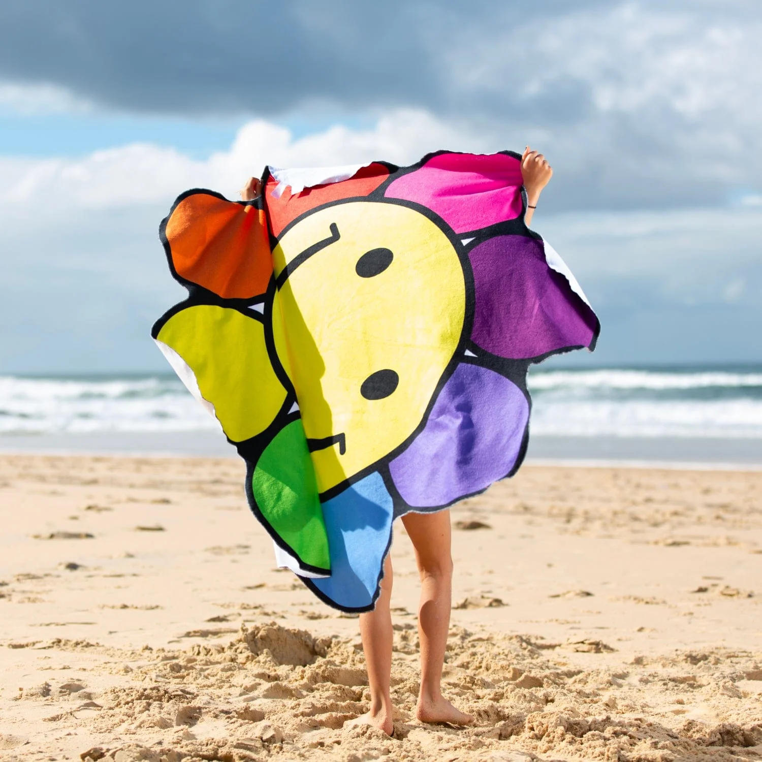Well, that feeling just got better with our Rainbow Daisy Beach Towel.