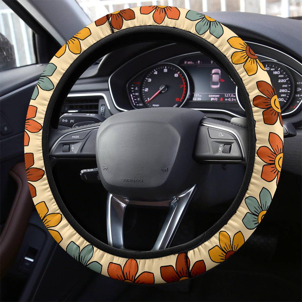Retro 1970s Smiling Flowers Steering Wheel Covers